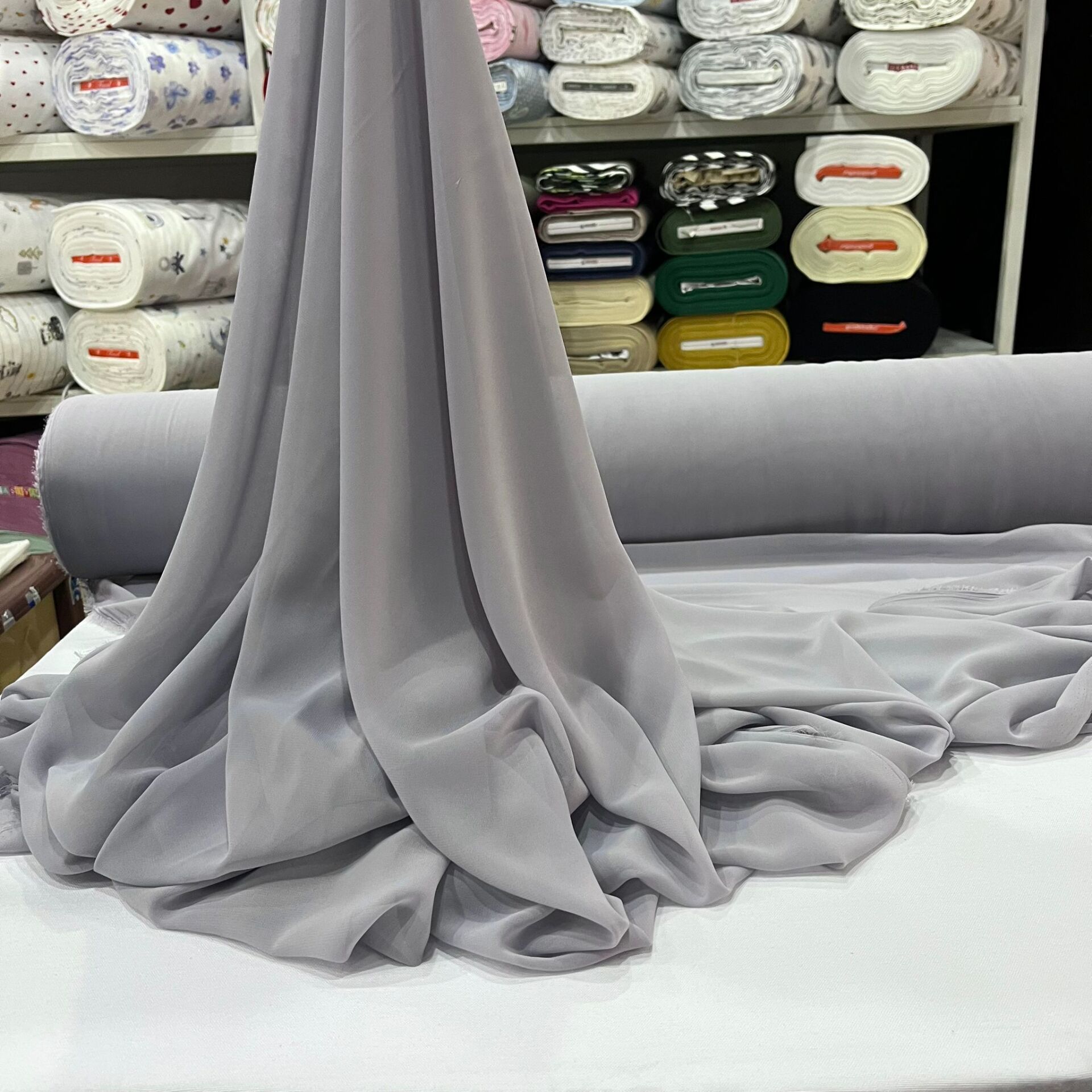 Gümüş Gri Şifon Kumaş. Şifon Kumaş Renk ve Çeşitleri Bursa Kumaş Pazarı’nda! Şifon Kumaş Özellikleri.Şifon Kumaş etek, elbise, şal, mevlüt örtüsü, eşarp, bluz, gömlek, tunik, pareo gibi giyim alanlarında rahatlıkla kullanılabilir. Şifon Kumaş incedir ve tek katlı dokunur. Şifon Kumaş ürünü incelemek ve sipariş vermek için tıklayınız.
