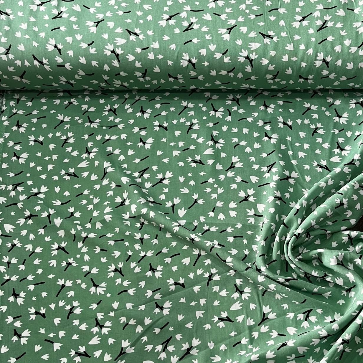 Yeşil Basma Çiçekler Viskon Kumaş