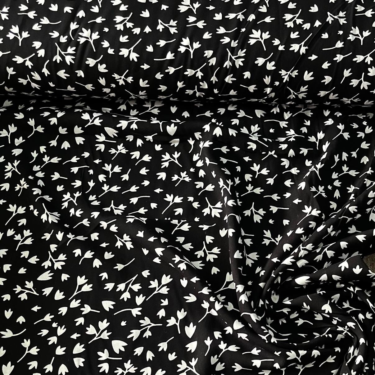 Siyah Basma Çiçekler Viskon Kumaş
