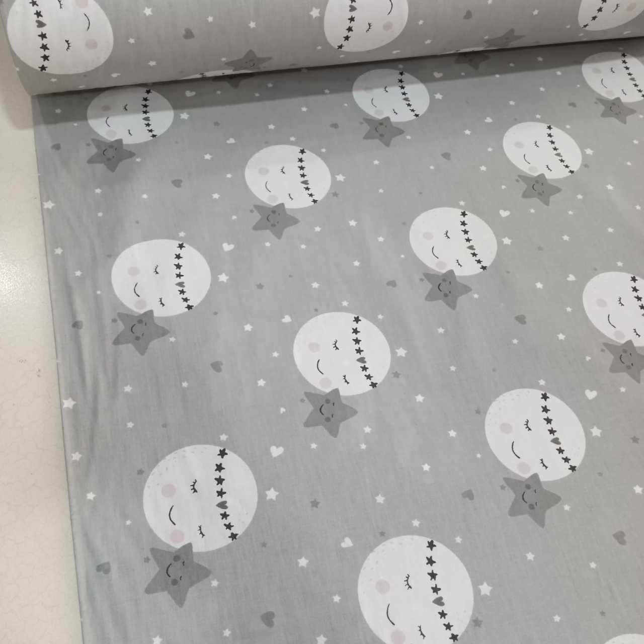 Gri Uykucu Ay Poplin Kumaş %100 pamuklu yapısıyla bebek ürünlerinde kullanılabilir. Poplin Kumaş nevresim takımı olarak kullanılabilir. Desenli Poplin kumaş renk ve modelleri. Poplin kumaş terleme yapmaz.