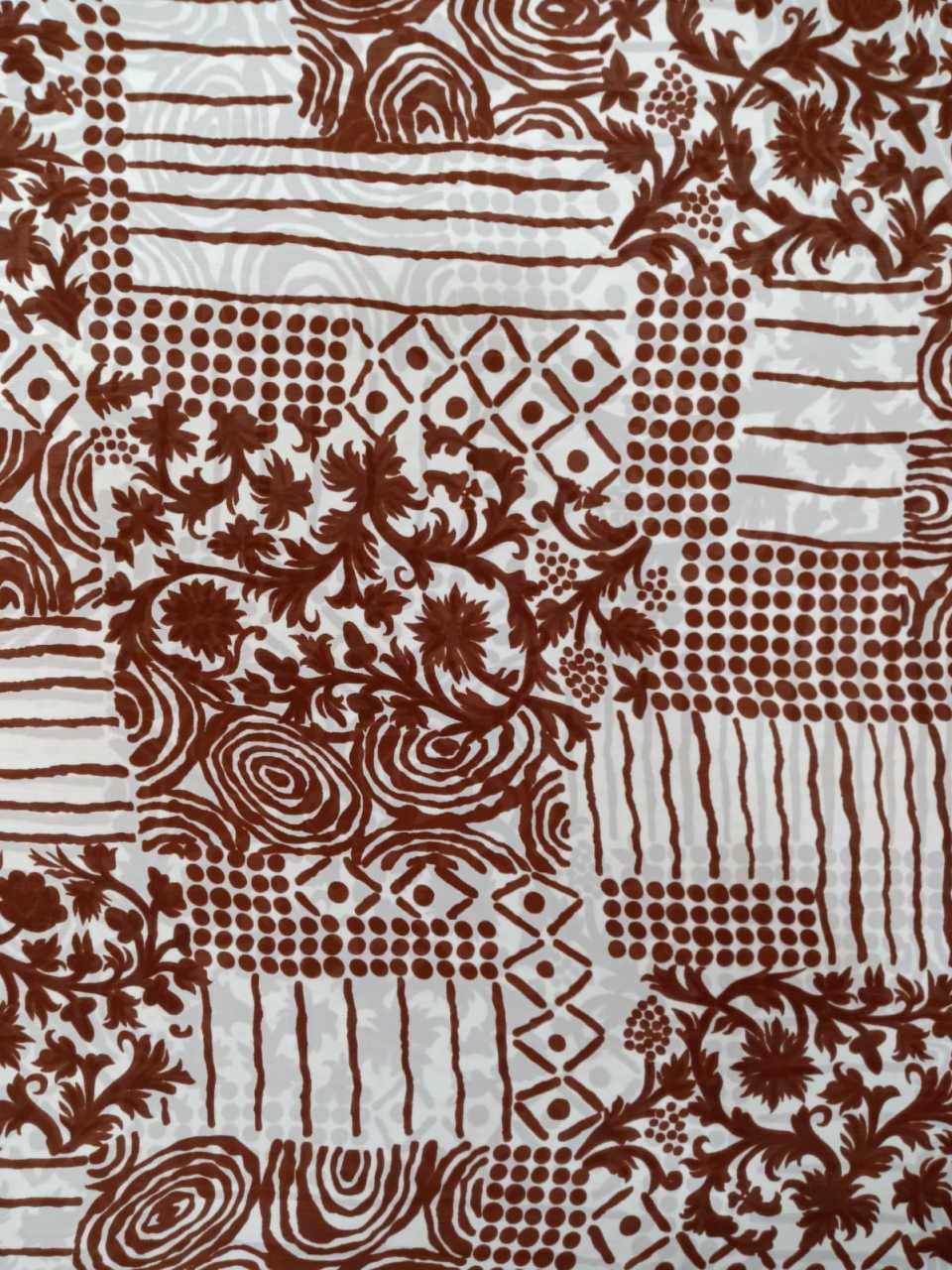 Kahve Krem Karışık Desen Şifon Kumaş