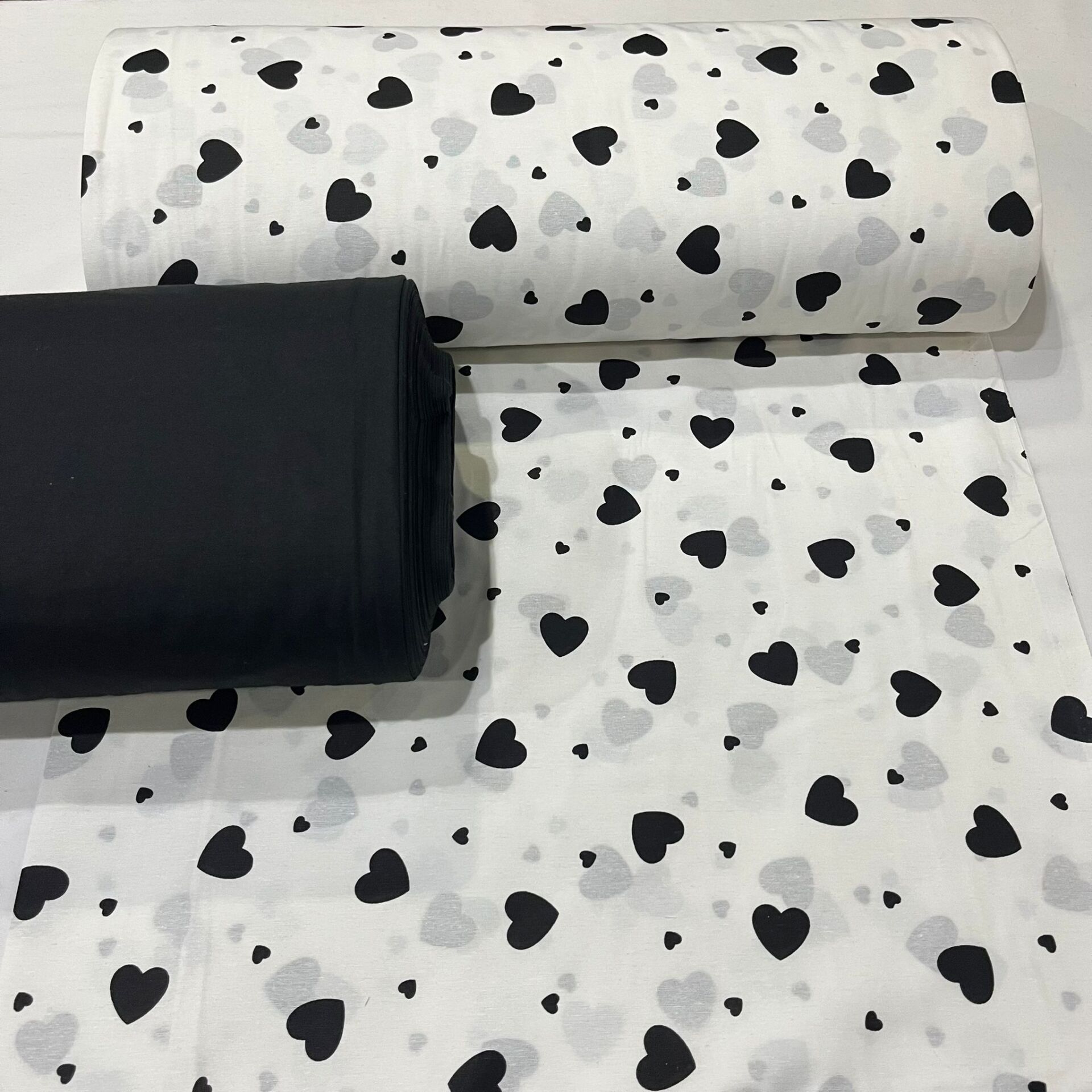 Siyah Kalp Poplin Kumaş