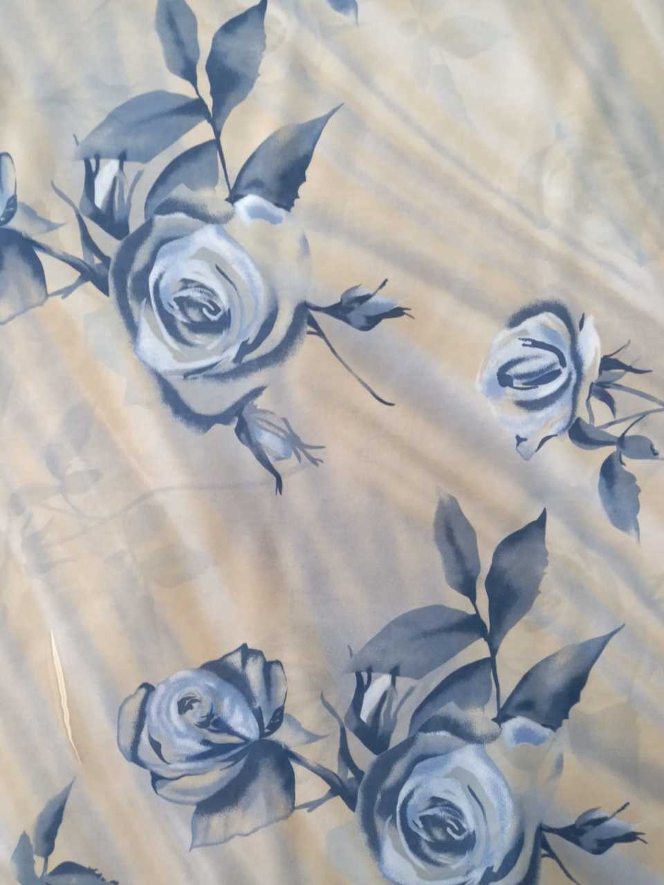 Krem Mavi Büyük Gül Şifon, altı astarlı elbise kumaşı olarak kullanılan, kaliteli, yumuşak ve şık kumaş türüdür. Elbise ve bluz üretiminde çok önemli yer tutan şifon, hafif ve ışık geçiren yapıdadır.Fular ve şal olarak tercih edilmektedir.