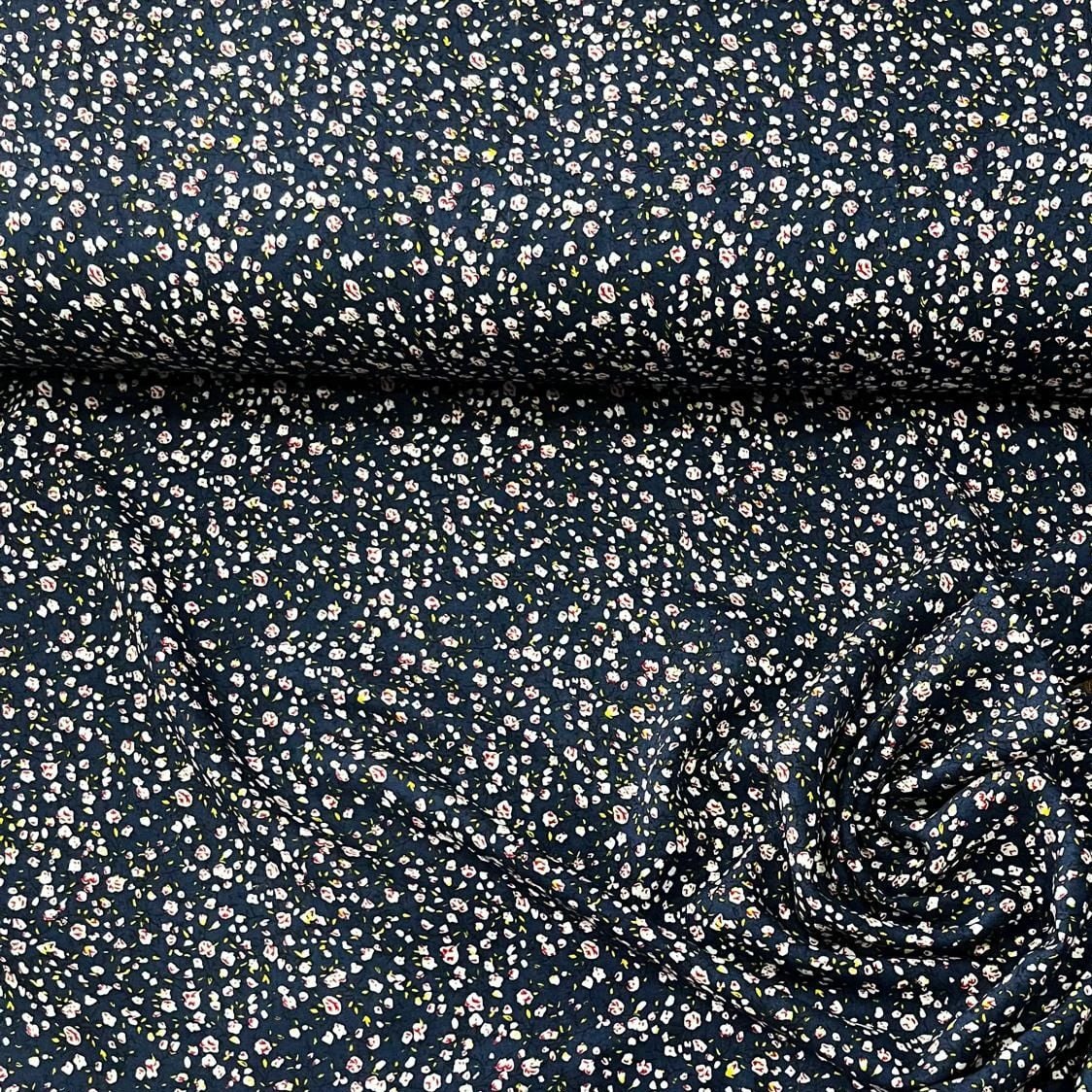 Lacivert Minik Çiçek Bahçesi Viskon Kumaş