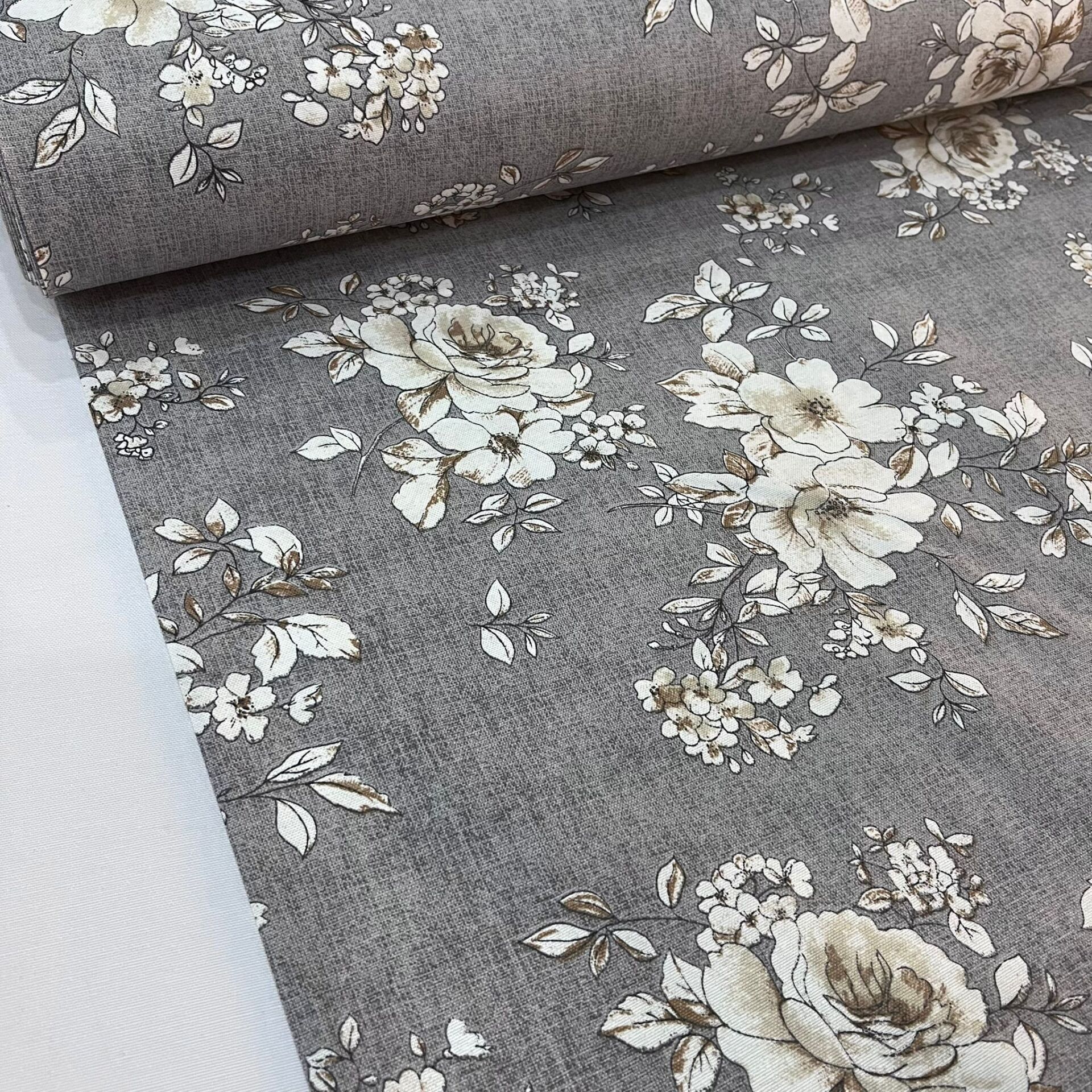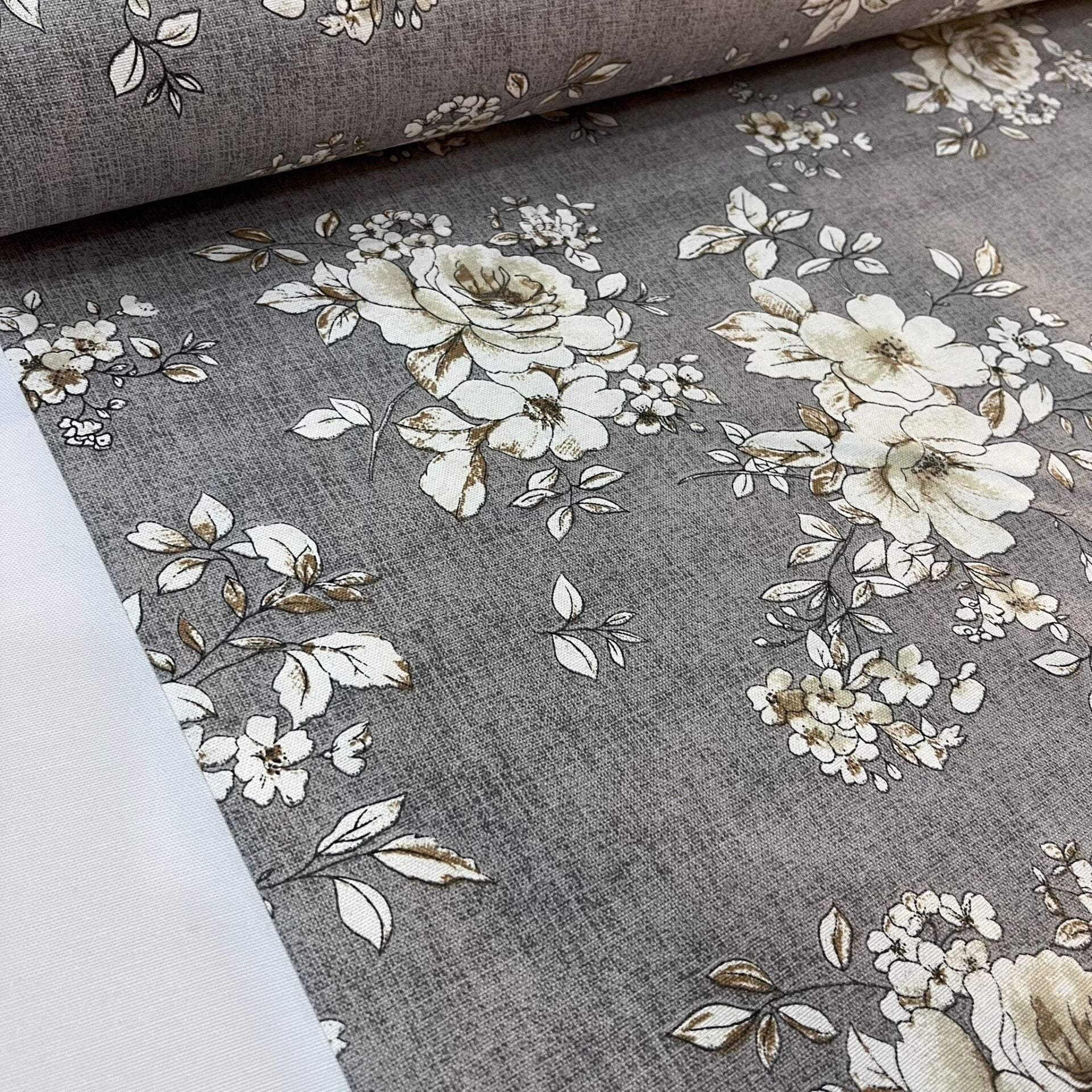 Pastel Gri Güller Döşemelik Duck Keten Kumaş (en 215 cm)