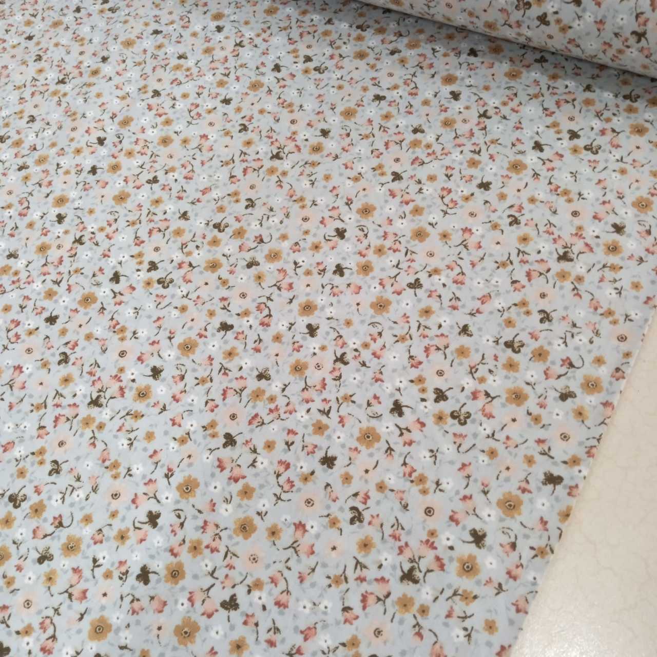 Minik Çiçekli Poplin Kumaşlar Mavi (kahve çiçekli)
