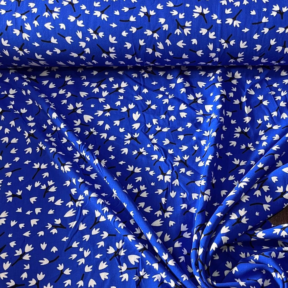 Mavi Basma Çiçekler Viskon Kumaş