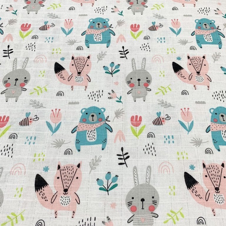 Orman Hayvanları Müslin Bezi Müslin Bezi Kumaşı Bursa Kumaş Pazarım’da! Müslin bezi bebekler ve çocuklar için tercih edilen %100 organik pamuk bir kumaş çeşididir.Orman Hayvanları Müslin Bezi Müslin Bezi Kumaşı modelleri ve çeşitleri. Müslin Bezi Kumaşı bebekler için havlu, battaniye, ter bezi, kundak, örtü olarak kullanılabilir.