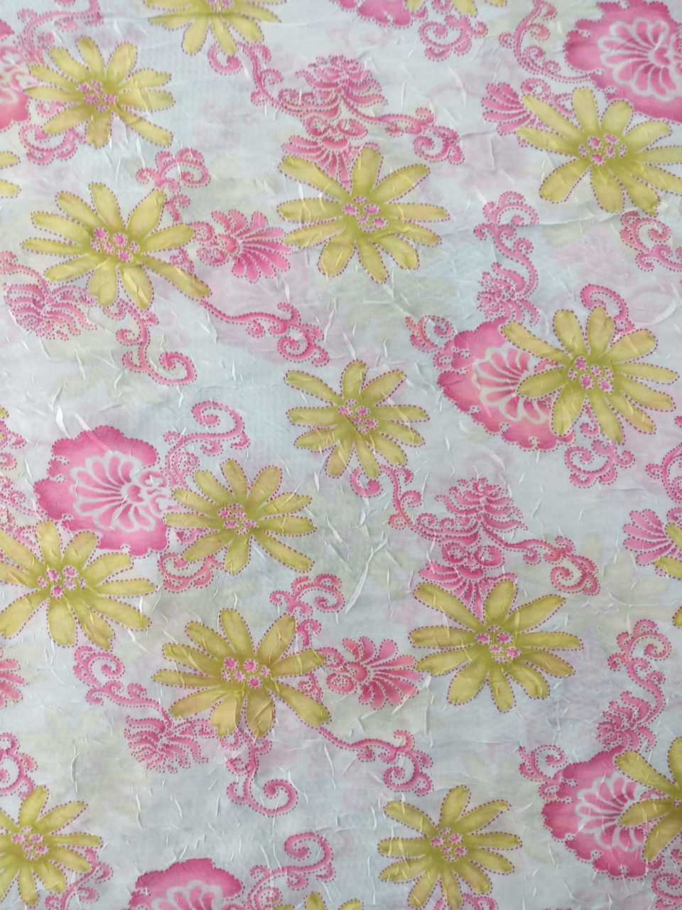 Pembe Mavi Çiçekler Krinkıl Şifon Kumaş