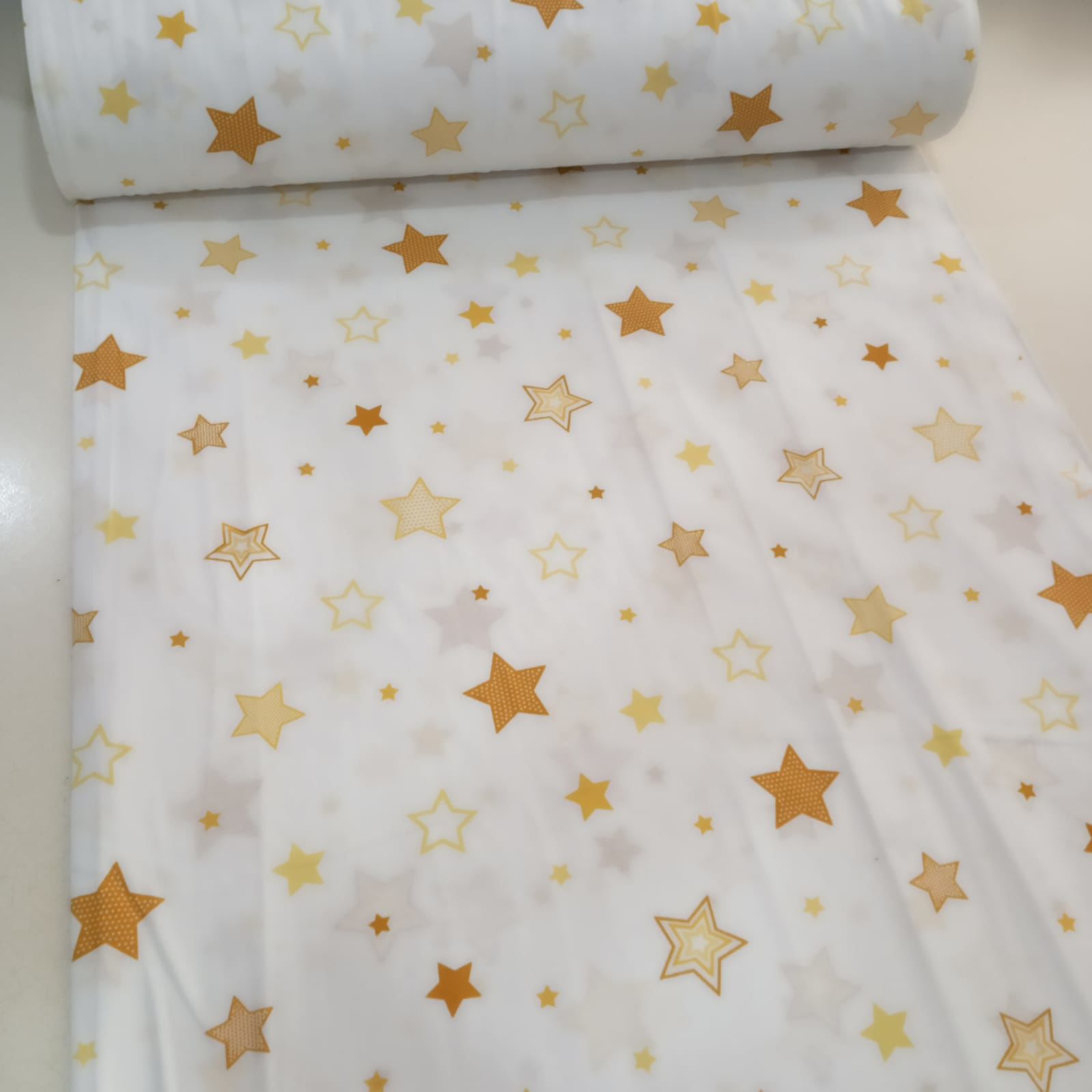 Sarı Küçük-Büyük Yıldızlar Poplin Kumaş pamuklu yapısıyla bebek ürünlerinde kullanılabilir. Poplin Kumaş nevresim takımı olarak kullanılabilir. Desenli Poplin kumaş renk ve modelleri. Poplin kumaş terleme yapmaz.