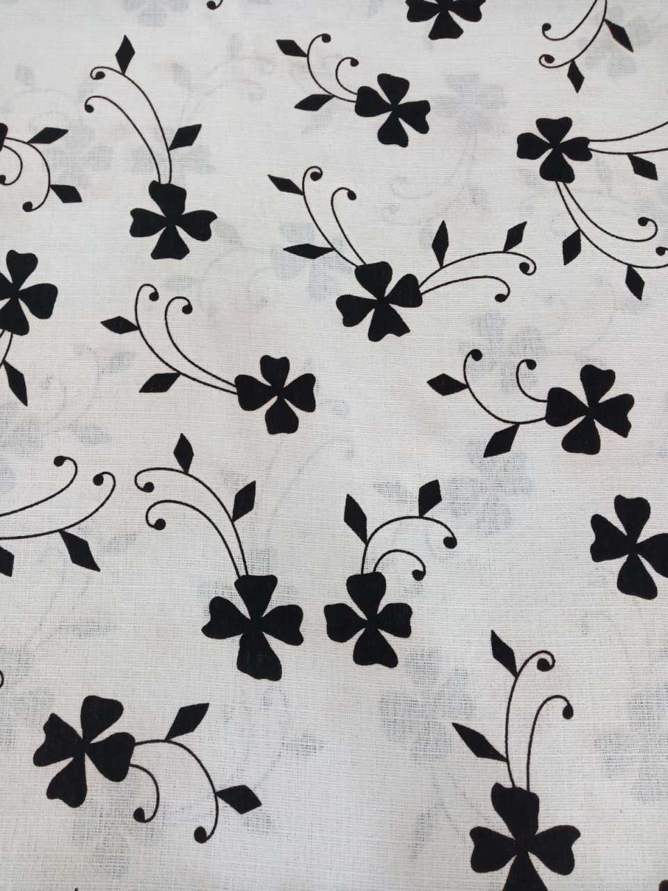 Siyah Beyaz Çiçekler Kumlu Keten