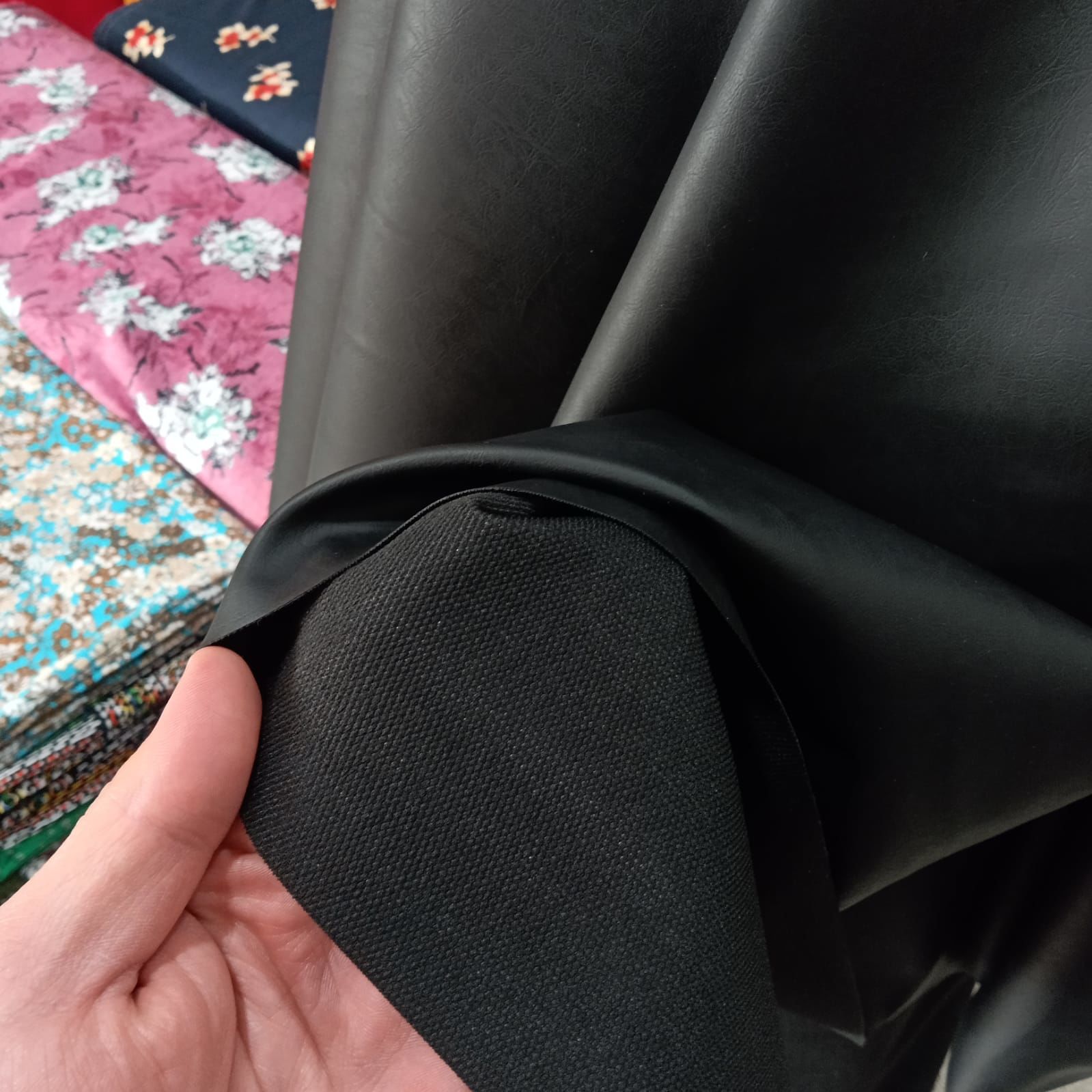 Siyah Dökümlü Suni Deri Kumaş