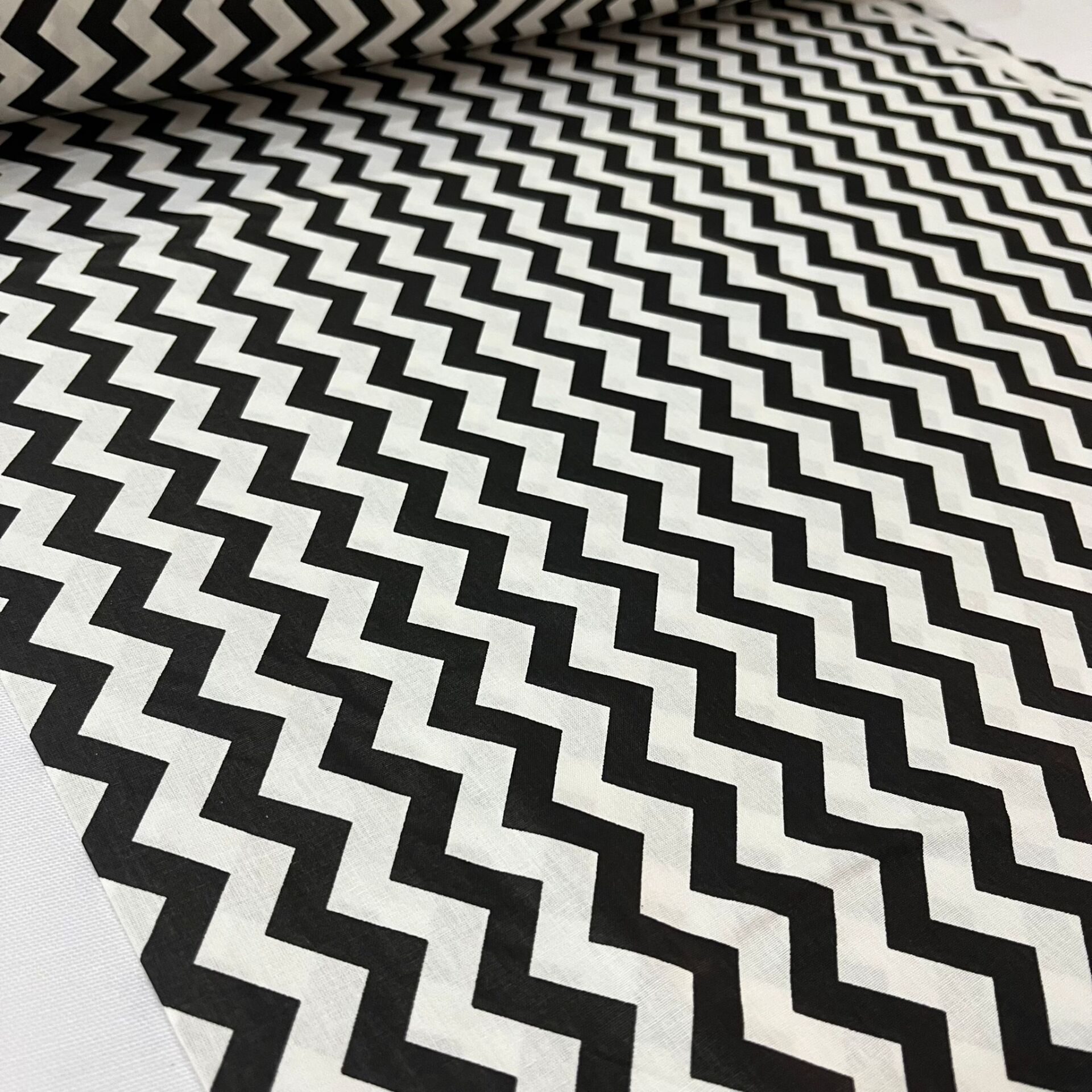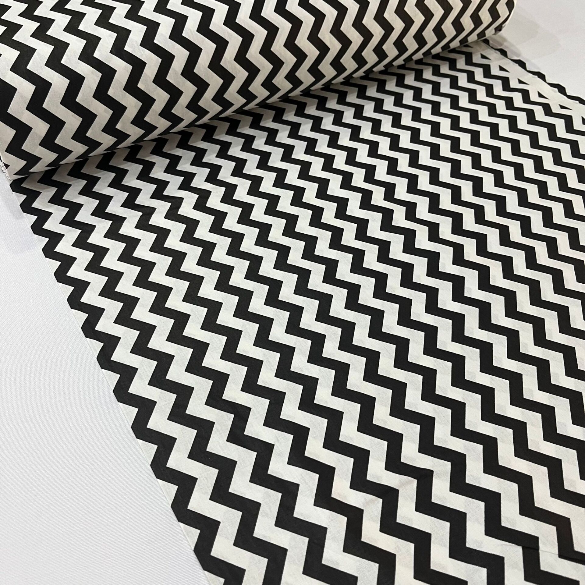 Siyah Zikzak Poplin Kumaş pamuklu yapısıyla bebek ürünlerinde kullanılabilir. Poplin Kumaş nevresim takımı olarak kullanılabilir. Desenli Poplin kumaş renk ve modelleri. Poplin kumaş terleme yapmaz.