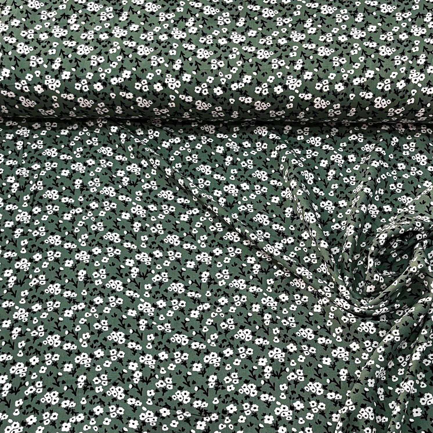 Yeşil Mini Papatya Viskon Kumaş