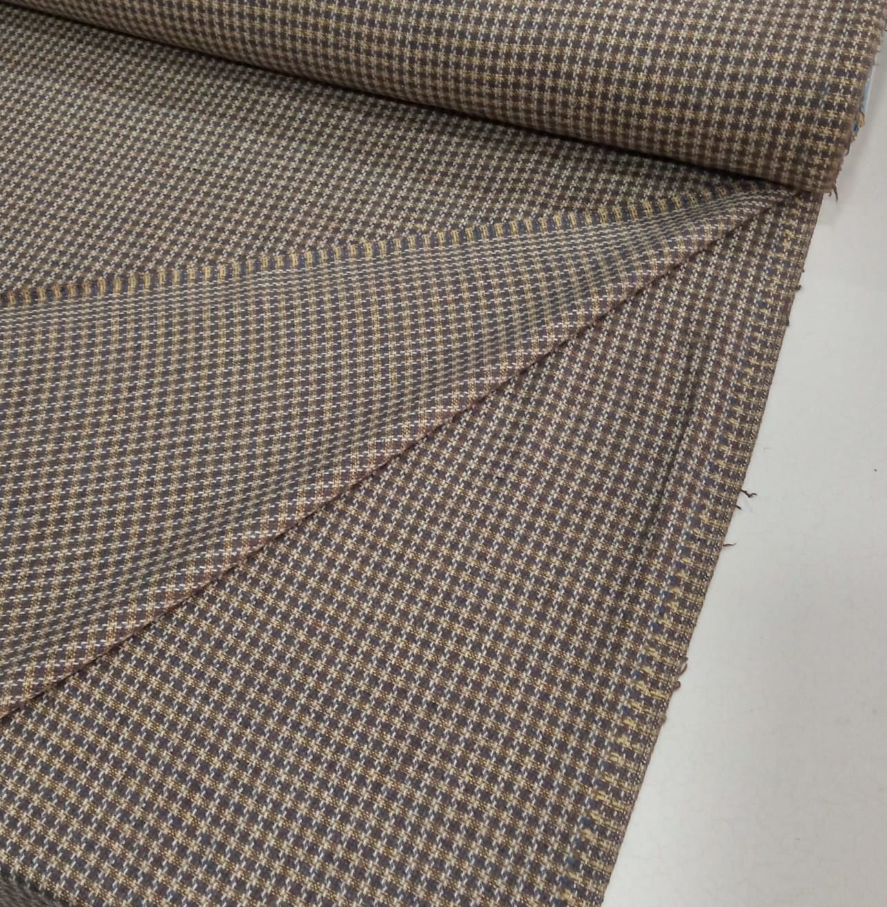 Yünlü Hardal-Kahve Pötikare Kumaş